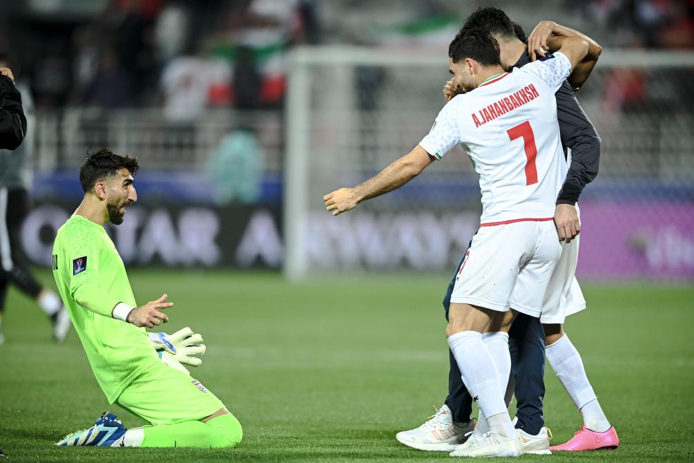 1月31日,伊朗隊(duì)守門(mén)員貝蘭萬(wàn)徳(左)在賽后慶祝。新華社記者 江漢 攝