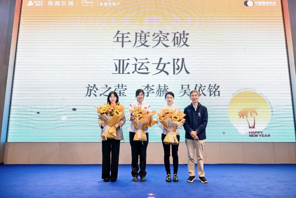除了本賽季圍甲常規(guī)賽各獎項外,中國圍棋協(xié)會為在2023年各大賽事中有精彩發(fā)揮的棋手設(shè)置了特別獎。吳依銘、於之瑩、李赫組成的亞運中國女隊榮膺年度突破獎,她們在杭州亞運會獲得圍棋女子團體冠軍,為中國隊奪得歷史上首枚亞運會圍棋項目金牌。辜梓豪憑借在衢州爛柯杯擊敗韓國名將申真谞奪冠,獲得年度振奮獎。一年內(nèi)包攬三星杯、LG杯兩大世界冠軍的丁浩獲得年度雙冠獎,成都女子圍棋隊獲得年度新軍獎。