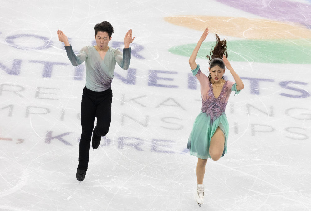 2月22日,中國(guó)組合肖紫兮(右)/何凌昊在自由舞比賽中。新華社發(fā)(全休相攝)