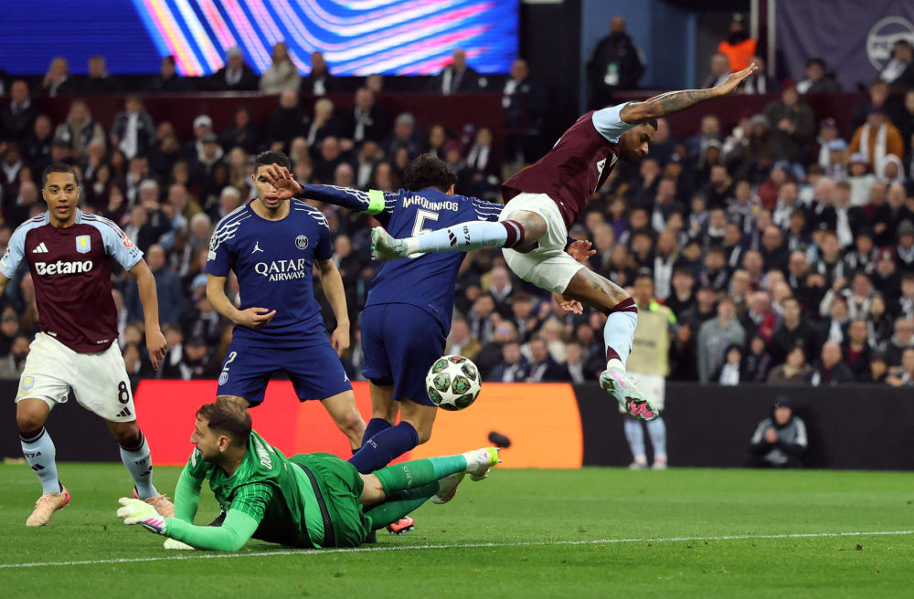 在維拉公園球場的雨戰(zhàn)中,首回合主場3:1勝出的巴黎圣日耳曼先聲奪人。第11分鐘,登貝萊左路突破后橫傳門前,維拉門將馬丁內(nèi)斯撲球失誤,阿什拉夫抓住機(jī)會(huì)勁射破網(wǎng)。“大巴黎”在第27分鐘打出高效反擊,登貝萊助攻左后衛(wèi)門德斯低射命中,將領(lǐng)先優(yōu)勢(shì)擴(kuò)大為2:0。