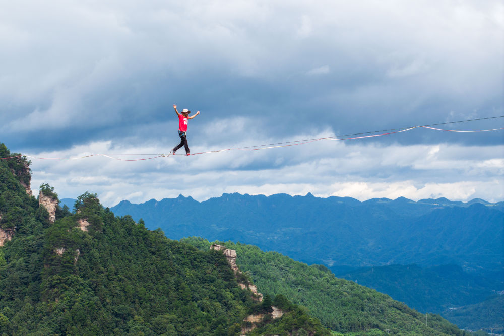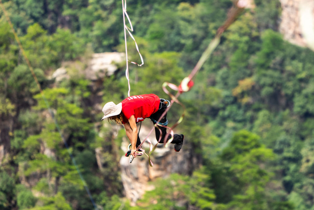 張家界高空扁帶爭(zhēng)霸賽落幕 盧森堡選手奪魁