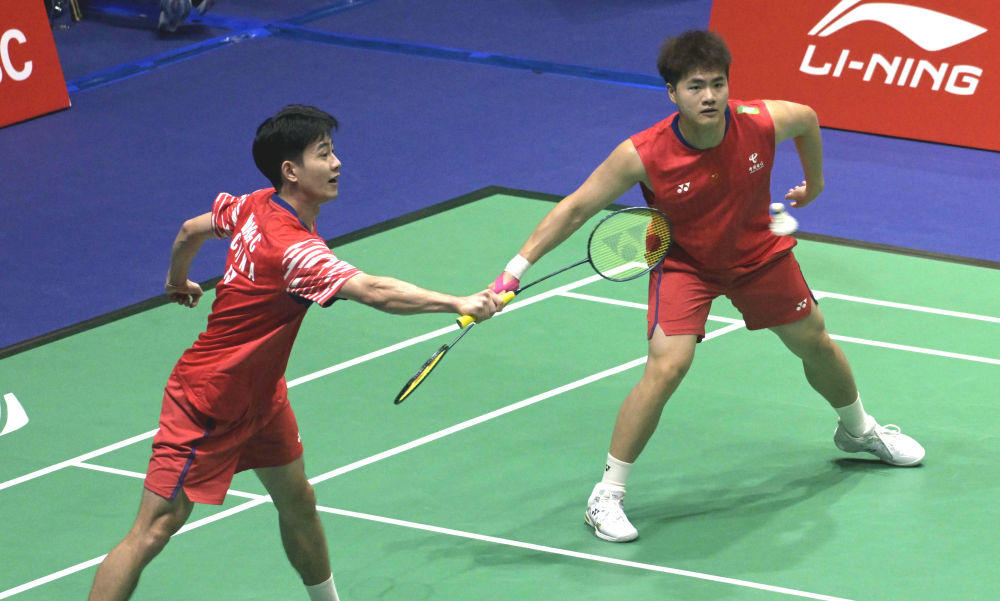 9月11日,梁偉鏗/王昶(左)在比賽中。新華社發(fā)(盧炳輝攝)