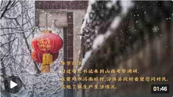 春節(jié)前夕,習(xí)近平總書記來(lái)到山西考察調(diào)研。在霍州市馮南垣村、汾西縣段村看望慰問(wèn)村民,實(shí)地了解生產(chǎn)生活情況。