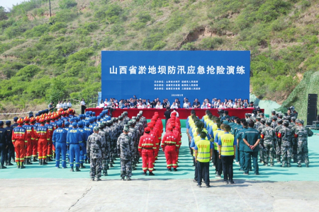 省水利廳和運城市聯(lián)合開展淤地壩防汛應(yīng)急搶險演練。本報通訊員攝
