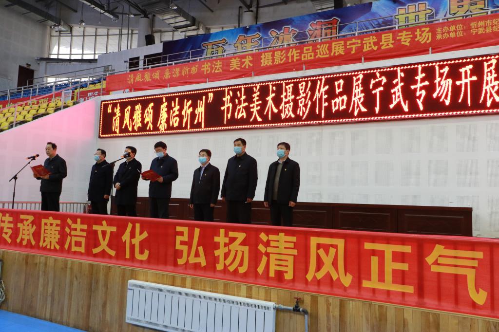 筆墨書廉潔,丹青揚正氣。11月27日,由忻州市紀(jì)委監(jiān)委主辦、寧武縣紀(jì)委監(jiān)委承辦的“清風(fēng)雅頌·廉潔忻州”書法美術(shù)攝影作品巡展寧武縣專場在縣體育館隆重開展。寧武縣委書記任寧虎在開展儀式上講話并宣布開展??h委常委、縣紀(jì)委書記、監(jiān)委主任尹志剛主持開展儀式??h四套班子領(lǐng)導(dǎo)和其他縣處級領(lǐng)導(dǎo),各縣直單位、各鄉(xiāng)(鎮(zhèn))的主要領(lǐng)導(dǎo),全縣紀(jì)檢監(jiān)察干部,共計180余人參加儀式。