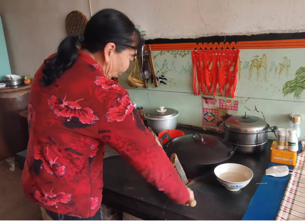 賀虎蘭在灶臺旁忙碌。