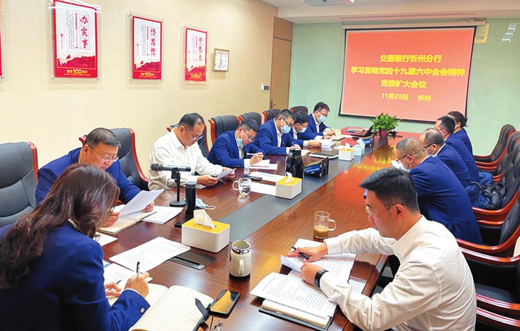 交通銀行忻州分行組織職工學(xué)習(xí)貫徹黨的十九屆六中全會(huì)精神