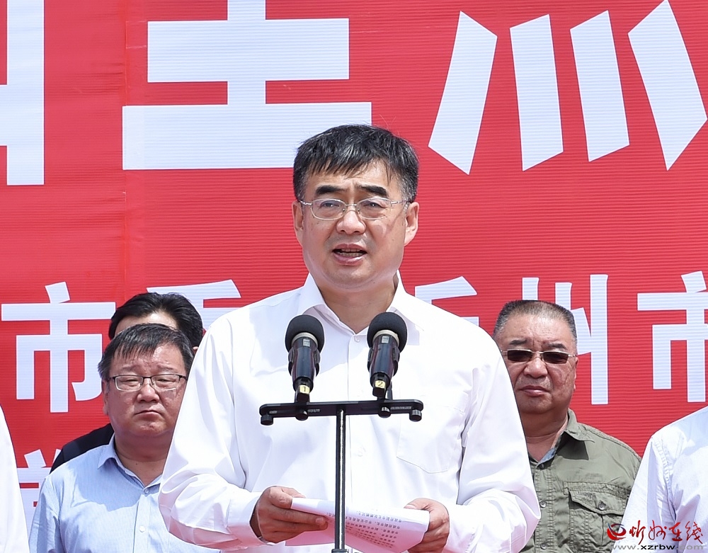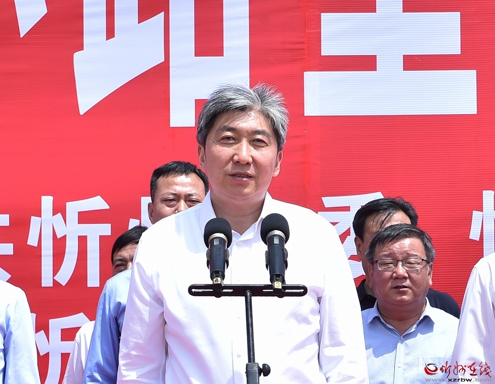 啟動(dòng)儀式上,朱曉東、李建國、郭奔勝、王珍、范建民分別為各指揮部授旗。原平市市長、定襄縣縣長、市交通運(yùn)輸局局長分別就忻原大道將軍山隧道控制性工程和忻原大道跨朔黃鐵路、滹沱河大橋控制性工程及太忻大道跨二廣高速控制性工程建設(shè)作表態(tài)發(fā)言。