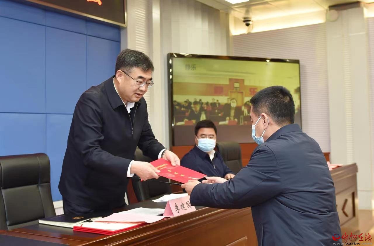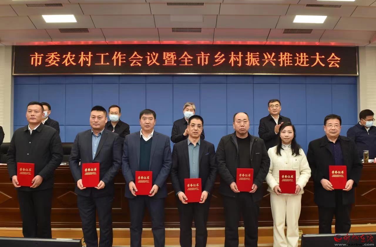 縣(市、區(qū))長遞交耕地保護(hù)和糧食安全責(zé)任狀。馮曉磊 攝 會(huì)上,宣讀了我市榮獲省2022年度村級集體經(jīng)濟(jì)發(fā)展“先進(jìn)村”名單、市委農(nóng)村工作領(lǐng)導(dǎo)小組辦公室《關(guān)于對2022年度全市農(nóng)村集體經(jīng)濟(jì)發(fā)展“先進(jìn)村”和帶動(dòng)農(nóng)村集體經(jīng)濟(jì)發(fā)展“先進(jìn)經(jīng)營主體”表揚(yáng)的決定》,并為受表揚(yáng)單位頒獎(jiǎng)。對《全面推進(jìn)鄉(xiāng)村振興加快建設(shè)農(nóng)業(yè)強(qiáng)市的實(shí)施方案》進(jìn)行了說明,解讀了《2023年鞏固脫貧攻堅(jiān)成果同鄉(xiāng)村振興有效銜接實(shí)施意見》和《“1+5”農(nóng)業(yè)產(chǎn)業(yè)扶持政策》,各縣(市、區(qū))長遞交了耕地保護(hù)和糧食安全責(zé)任狀,并作交流發(fā)言。