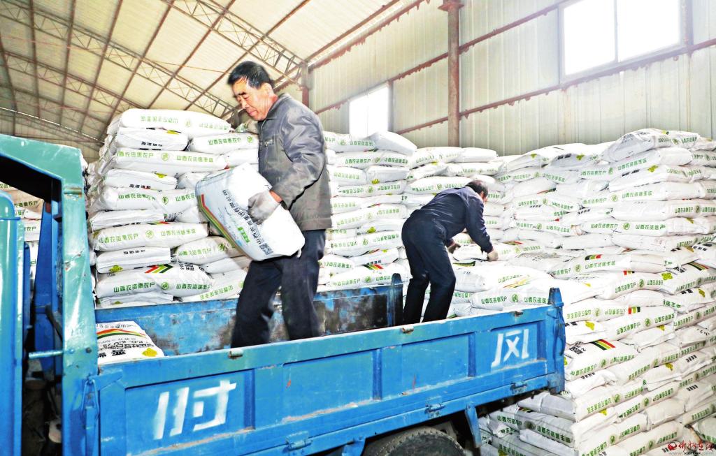 3月14日,在原平市西鎮(zhèn)鄉(xiāng)的山西農(nóng)資國家化肥儲(chǔ)備庫內(nèi),工人正在搬運(yùn)化肥。原平市組織農(nóng)資公司及時(shí)調(diào)配、裝運(yùn)化肥等春耕物資,保障農(nóng)資市場(chǎng)供應(yīng),引導(dǎo)農(nóng)民搶抓農(nóng)時(shí),投入春耕備耕生產(chǎn),為全年農(nóng)業(yè)生產(chǎn)夯實(shí)基礎(chǔ)。 (褚 震攝