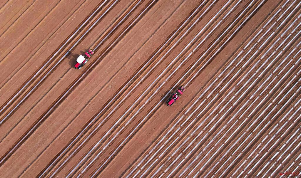 4月21日,在忻州民宇農(nóng)業(yè)甜糯玉米標準化種植基地,兩臺玉米膜側(cè)播種機聯(lián)合作業(yè),搶農(nóng)時進行播種。近年來,該基地采用玉米膜側(cè)播種綜合栽培技術(shù)進行播種,有效解決了高溫導(dǎo)致玉米早衰等問題,提高了降水利用率,增加了玉米產(chǎn)量。 (張存良攝)