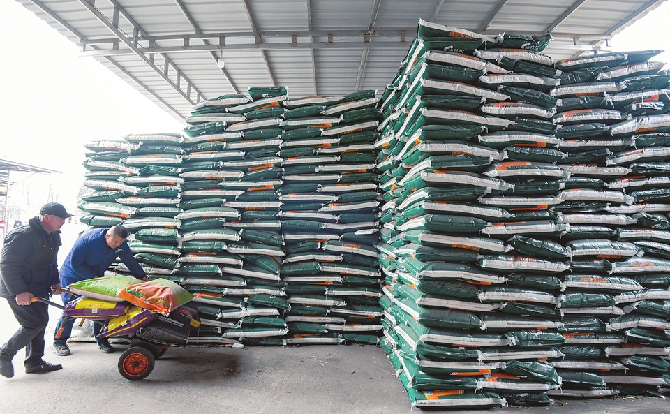 2月24日,長子縣清風(fēng)農(nóng)資連鎖有限責(zé)任公司院內(nèi),工人在搬運(yùn)化肥。隨著春耕生產(chǎn)臨近,該公司開通綠色通道,24小時(shí)不間斷作業(yè),加快化肥裝卸、轉(zhuǎn)運(yùn),全力保障春耕備耕。梁棟攝 (責(zé)任編輯:盧相?。?/span> |