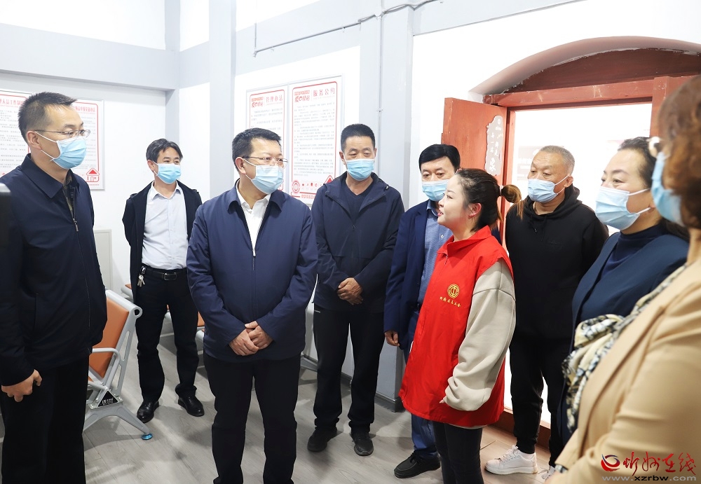 4月13日,市人大常委會副主任、市總工會主席羅志宏(左三)在忻府區(qū)調研愛心驛站建設及區(qū)總工會關心關愛一線防疫人員工作情況。