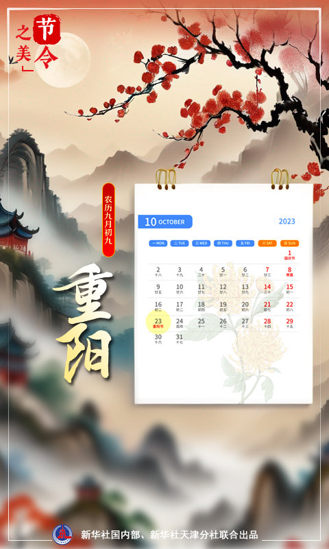 新華社天津10月22日電(記者周潤?。熬湃拯S花酒,登高會昔聞?!?0月23日,農(nóng)歷九月初九,重陽節(jié)。歲歲重陽,今又重陽。農(nóng)歷九月初九緣何是重陽?其中蘊含著怎樣的“數(shù)字密碼”?