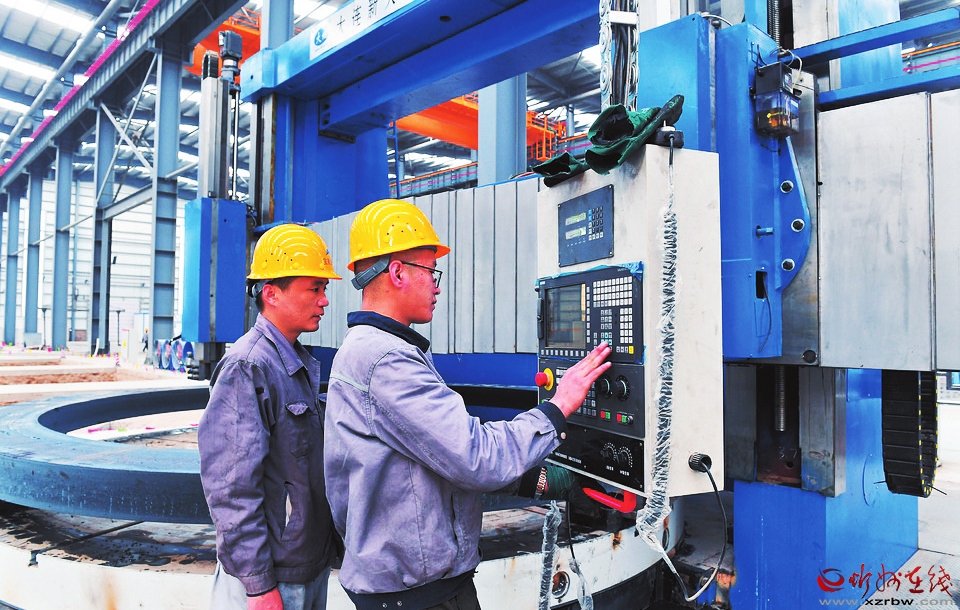 在山西寶航重工有限公司生產(chǎn)車(chē)間內(nèi),工人正在操作加工設(shè)備。 暢 雪 郗宏光攝
