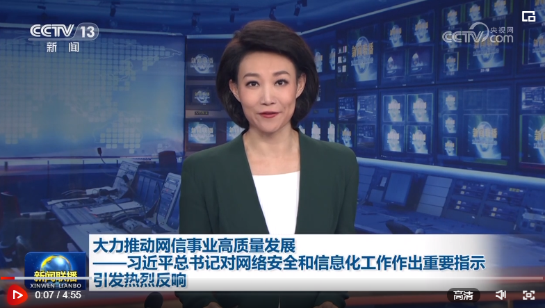 央視網(wǎng)消息(新聞聯(lián)播):習(xí)近平總書記近日對(duì)網(wǎng)絡(luò)安全和信息化工作作出重要指示,在社會(huì)各界引發(fā)熱烈反響,大家表示,要堅(jiān)持以習(xí)近平新時(shí)代中國特色社會(huì)主義思想為指導(dǎo),大力推動(dòng)網(wǎng)信事業(yè)高質(zhì)量發(fā)展,以網(wǎng)絡(luò)強(qiáng)國建設(shè)新成效為全面建設(shè)社會(huì)主義現(xiàn)代化國家、全面推進(jìn)中華民族偉大復(fù)興作出新貢獻(xiàn)。