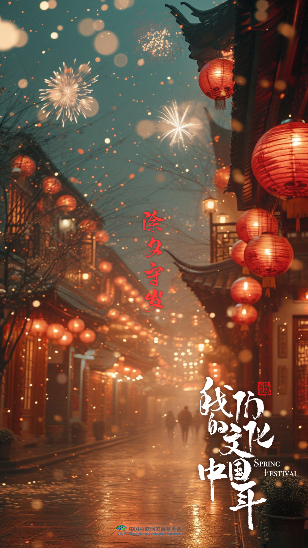 為了讓這個夜晚熬出意義,熬出風采。 全家人歡聚一堂, 讓所有房間亮堂通宵不滅,來年財富充實。 人們吃著一年中最豐盛的年夜飯, 放滿一桌茶點瓜果, 聊往事,夸未來,談笑暢敘, 有人看著春晚和熱搜, 有人打著麻將和游戲。 所有人, 都在等待著新年的到來。