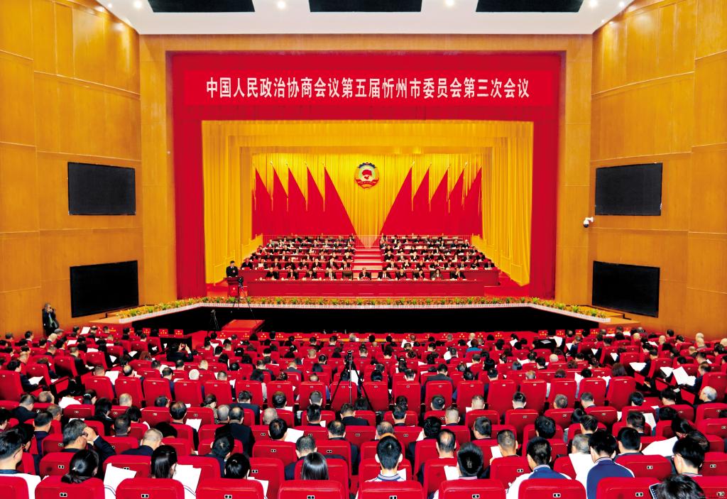 忻州大劇院大劇場(chǎng)布置簡樸,莊嚴(yán)隆重。會(huì)場(chǎng)內(nèi),燈光璀璨,氣氛熱烈。中國人民政治協(xié)商會(huì)議會(huì)徽懸掛在主席臺(tái)正中,十面鮮艷的紅旗分列兩側(cè)。會(huì)場(chǎng)后方高高懸掛著大紅條幅:以習(xí)近平新時(shí)代中國特色社會(huì)主義思想為指導(dǎo),推動(dòng)中國式現(xiàn)代化忻州實(shí)踐邁出堅(jiān)實(shí)步伐!