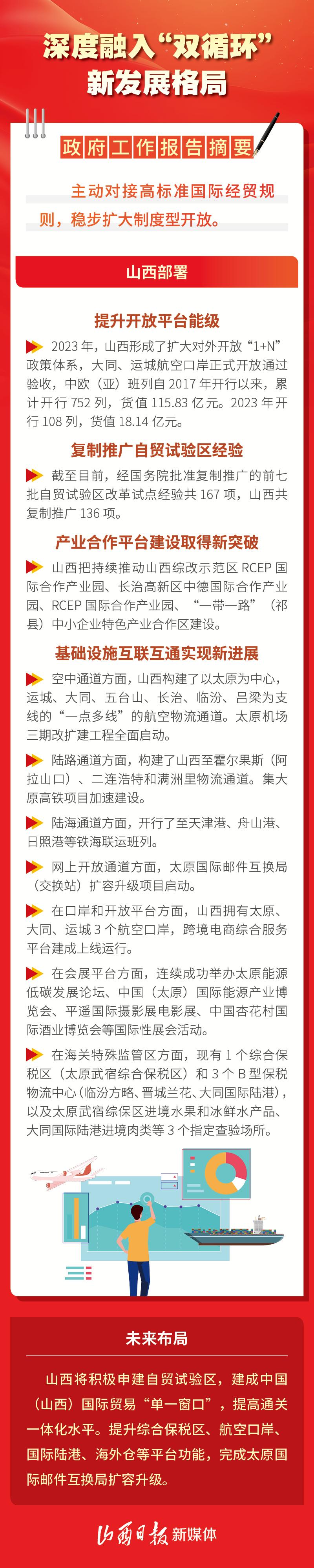 今年政府工作報(bào)告提出,擴(kuò)大高水平對(duì)外開放,促進(jìn)互利共贏。這為山西打造內(nèi)陸地區(qū)對(duì)外開放新高地進(jìn)一步明確了方向。