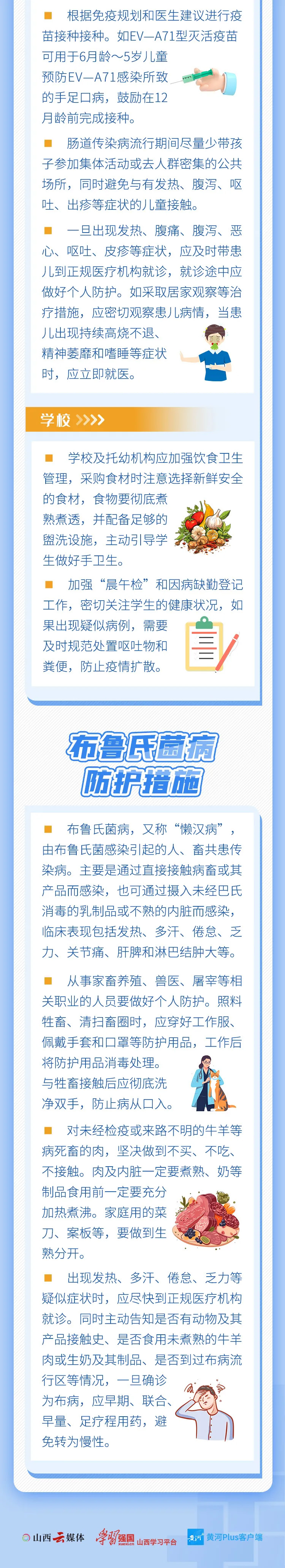 山西省疾病預(yù)防控制中心專家組介紹,我省新型冠狀病毒感染呈現(xiàn)緩慢上升趨勢,流行性感冒呈現(xiàn)波動流行趨勢,百日咳超過既往同期水平,水痘、猩紅熱等呼吸道傳染病疫情存在波動,手足口、諾如病毒所致的感染性腹瀉等腸道傳染病將進入高發(fā)季,布魯氏菌病等人畜共患傳染病風(fēng)險增加,全省春季傳染病疫情呈現(xiàn)多種傳染病交替或共同流行態(tài)勢。