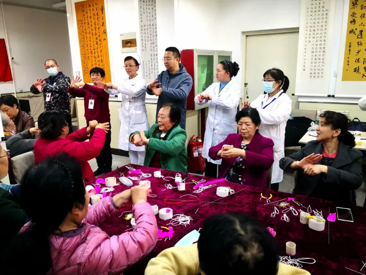 “我們還會(huì)定期為老年人開(kāi)展美發(fā)服務(wù)、智能手機(jī)培訓(xùn)班、古琴班講座等活動(dòng),其中最受大家歡迎的還是我們科室成員自創(chuàng)開(kāi)發(fā)的健腦手指操?!鄙结t(yī)大二院老干部科科長(zhǎng)李曉峰介紹,“手指操”創(chuàng)編出來(lái)后,每天下午在大院廣場(chǎng)上,有的高齡老人坐著輪椅來(lái)做操,有的老人在家里隔著玻璃做操,可謂是風(fēng)靡一時(shí)。這項(xiàng)活動(dòng)除了能鍛煉老年人的手眼協(xié)調(diào)能力、專注力和記憶力,還能延緩?fù)嘶俣取?/p>