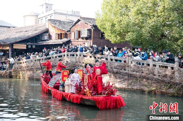 圖為浙江紹興安昌古鎮(zhèn)的水上婚禮。強歌 攝