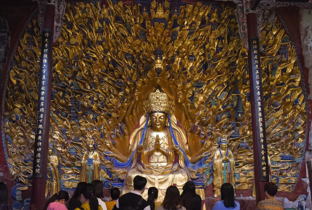 1952年,大足石刻文物保護(hù)機(jī)構(gòu)成立,開始系統(tǒng)科學(xué)保護(hù)大足石刻。當(dāng)年,北山石刻保護(hù)長廊啟動建設(shè),北山石刻上方加蓋了擋雨的頂棚;1961年,北山、寶頂山摩崖造像成為第一批全國重點文物保護(hù)單位;1999年,大足石刻被列入《世界遺產(chǎn)名錄》;2015年,全國石質(zhì)文物保護(hù)一號工程——大足石刻千手觀音造像搶救性保護(hù)工程竣工;2019年,《大足石刻全集》出版,填補(bǔ)了國內(nèi)石窟寺編寫出版大型考古報告的空白……