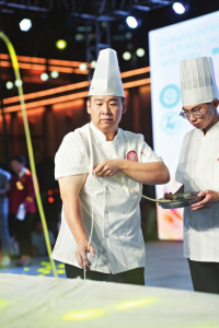 其中,面食技藝秀將傳統(tǒng)非遺技藝與體育競技相融合,選手們進(jìn)行了刀削面投籃、剔尖鉆銅錢、雙柄刀撥面、龍須拉面、吹面氣球、一根面等面食技藝表演。舞面技藝秀展示了扯面舞、面手絹、大刀切面、襄垣手工大把拉面等制作技藝,選手們邊舞邊制作非遺面食,引得現(xiàn)場觀眾叫好。花樣面食秀現(xiàn)場更是里三層外三層圍滿了人,面點(diǎn)大師劉志娟等展示的雙搟餃子皮、墩燒麥皮、推莜面等拿手絕活讓人連連驚嘆技藝的高超。現(xiàn)場,中國烹飪導(dǎo)師劉強(qiáng)、資深級(jí)注冊中國烹飪大師王俊如、注冊中國烹飪大師杭偉州等業(yè)內(nèi)大師為參賽選手裁判、點(diǎn)評(píng)。