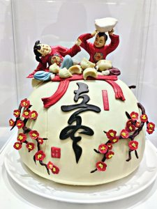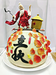 展覽的中心位置陳列著一件名為“龍騰盛世”的巨型霍州花饃作品,這件約2.5米高的作品,以中華龍為主題,象征著民族的繁榮與昌盛,是本次展覽中最大的一件作品。該作品與現(xiàn)場年饃、喜饃、壽饃、禮饃等4組作品代表霍州花饃的巔峰之作。