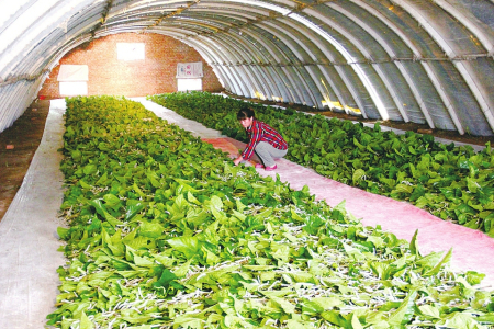 陽(yáng)城縣蠶桑技術(shù)中心副主任劉學(xué)兵說:“大棚養(yǎng)蠶省工省力、安全高效,既可以擴(kuò)大養(yǎng)殖規(guī)模,又可以節(jié)約勞動(dòng)力、提高效率,還有利于蠶室的徹底消毒防病,提高蠶繭產(chǎn)量?!?/p>