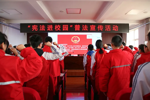 12月4日,是第十一個國家憲法日。當(dāng)天,忻州中院聯(lián)合團(tuán)忻州市委、五臺法院、團(tuán)五臺縣委,走進(jìn)五臺縣東冶鎮(zhèn)沱陽中學(xué),為150余名學(xué)生上了一場別開生面的“法治課”,讓法治的“種子”在校園生根發(fā)芽,讓“法治光芒”照亮未成年人成長路。