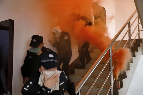 在應(yīng)急疏散演練環(huán)節(jié),隨著警報響起,干警們按照預(yù)定方案進入應(yīng)急疏散狀態(tài),大家捂住口鼻、俯身彎腰,沿著安全通道有序撤離至安全區(qū)域。演練過程中,干警們表現(xiàn)出了高度的紀律性和團隊協(xié)作精神,整個疏散過程迅速而有序,達到了預(yù)期演練效果。