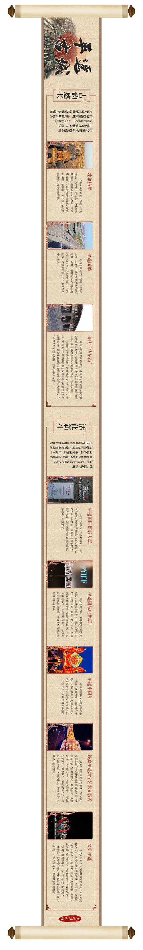 平遙古城 一座擁有2700余年歷史的古城 1986年被公布為國(guó)家歷史文化名城 1997年被列入《世界遺產(chǎn)名錄》 整個(gè)平遙古城保護(hù)區(qū)包括“一城兩寺” 即平遙古城以及位于城郊的鎮(zhèn)國(guó)寺和雙林寺 點(diǎn)擊展開畫卷