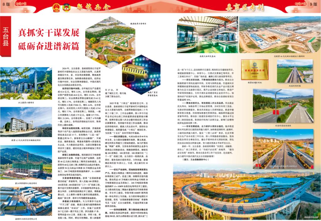 承載能力有效提升。大力開(kāi)展學(xué)習(xí)運(yùn)用“千萬(wàn)工程”經(jīng)驗(yàn)、推進(jìn)以縣城為重要載體的城鎮(zhèn)化建設(shè)“雙試點(diǎn)”工作,實(shí)施了總投資20.7億元的一攬子民生工程,涉及道路17條、管網(wǎng)改造63.6公里、醫(yī)院2座、學(xué)校3座、養(yǎng)老院1座。同時(shí),順應(yīng)百姓期盼,投入新能源車(chē)17臺(tái),開(kāi)通了城區(qū)公交,極大地方便了群眾出行。2025年是“十四五”規(guī)劃收官之年。五臺(tái)縣委、縣政府將以習(xí)近平新時(shí)代中國(guó)特色社會(huì)主義思想為指導(dǎo),全面貫徹落實(shí)黨的二十大和二十屆二中、三中全會(huì)精神,深入學(xué)習(xí)習(xí)近平總書(shū)記對(duì)山西工作的重要講話重要指示精神,按照市委五屆八次全會(huì)暨市委經(jīng)濟(jì)工作會(huì)議部署要求,堅(jiān)持穩(wěn)中求進(jìn)工作總基調(diào),推動(dòng)經(jīng)濟(jì)持續(xù)向好,提高人民生活水平,保持社會(huì)和諧穩(wěn)定,高質(zhì)量完成“十四五”規(guī)劃任務(wù),為實(shí)現(xiàn)“十五五”良好開(kāi)局打牢基礎(chǔ)。