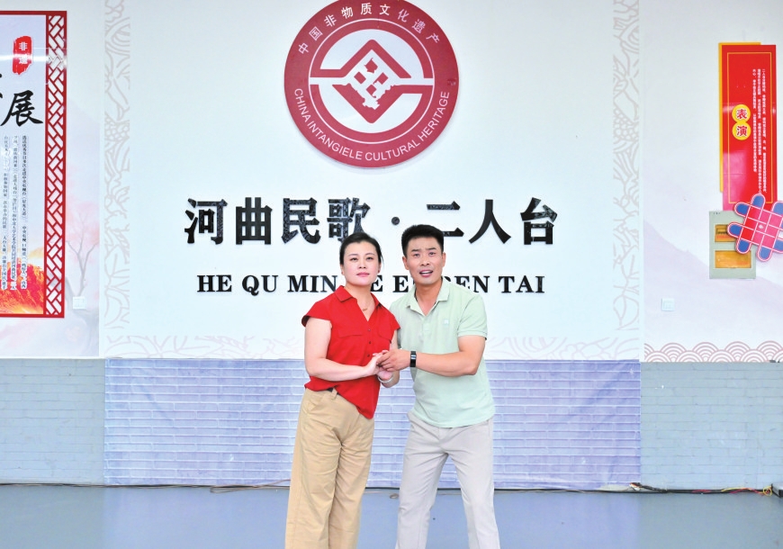 走進(jìn)河曲縣白樸公園,一段清亮婉轉(zhuǎn)的唱腔便隨風(fēng)入耳——河曲縣民歌二人臺藝術(shù)團演員鄔光正和同事們?nèi)橥度?,打磨大型非遺音樂劇《大河長歌》。他額角滲著細(xì)密的汗珠,當(dāng)唱到“好兒女今日唱長歌,勝過了前輩了不得”時,突然停了下來,對搭檔說:“再來一遍,剛才那口氣沒頂滿?!边@份對細(xì)節(jié)的較真,藏著他對二人臺藝術(shù)最樸素也最深厚的敬畏。